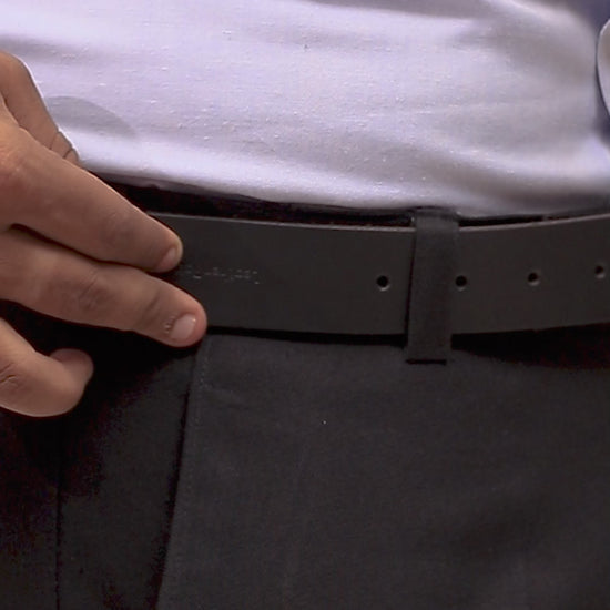 Our no-hole leather belt is adjustable and can be trimmed to your perfect size in just a few simple steps: