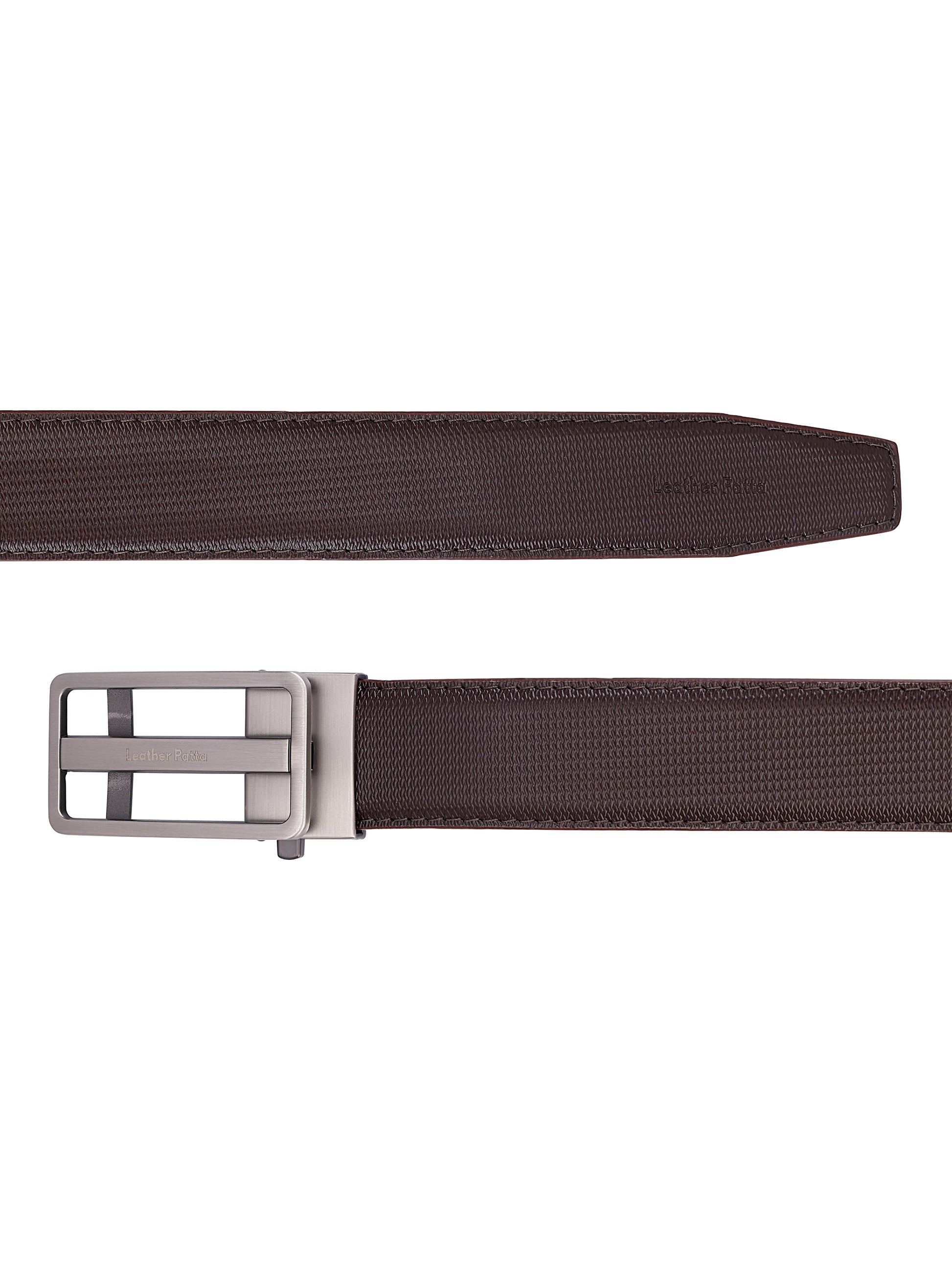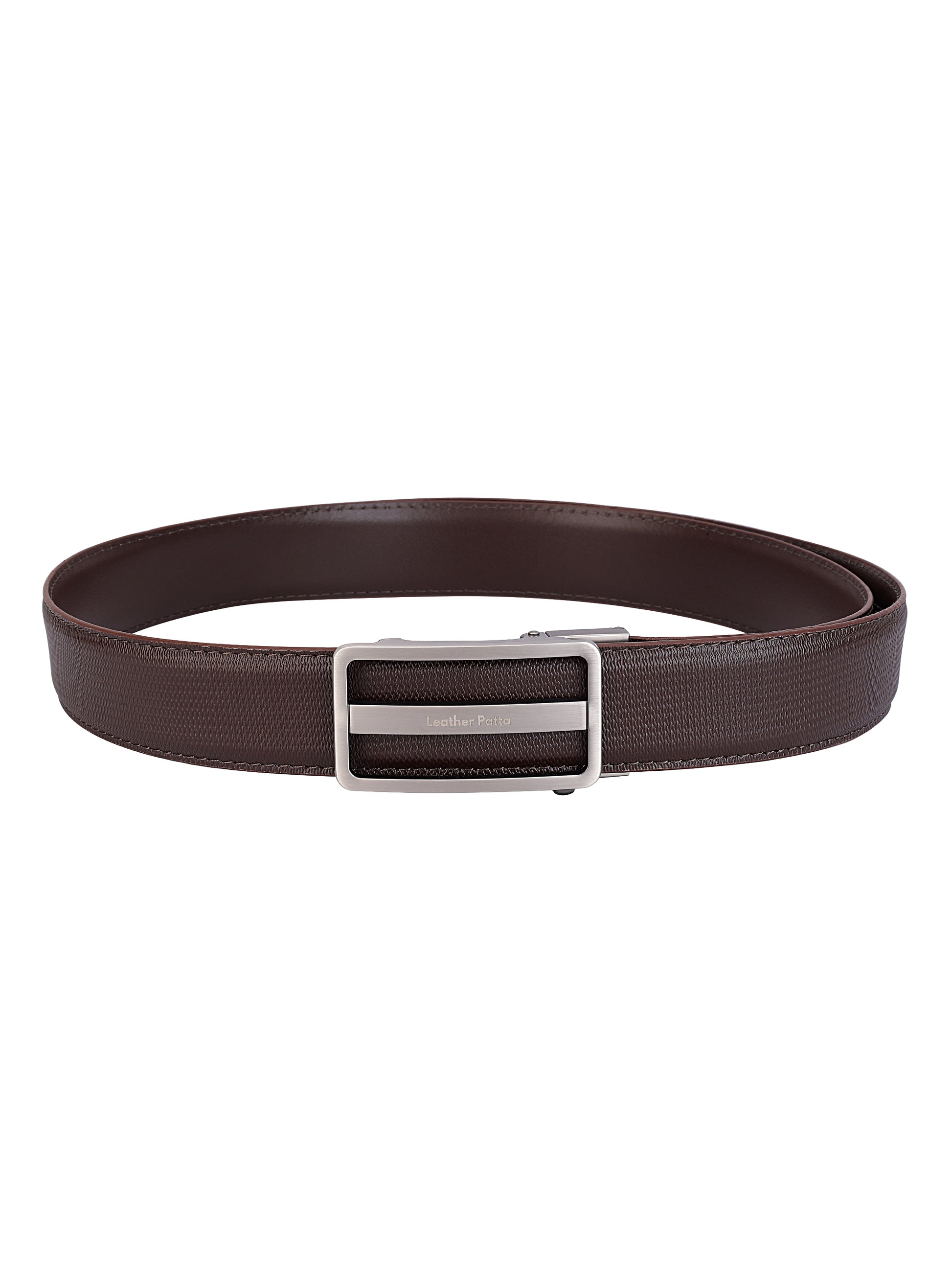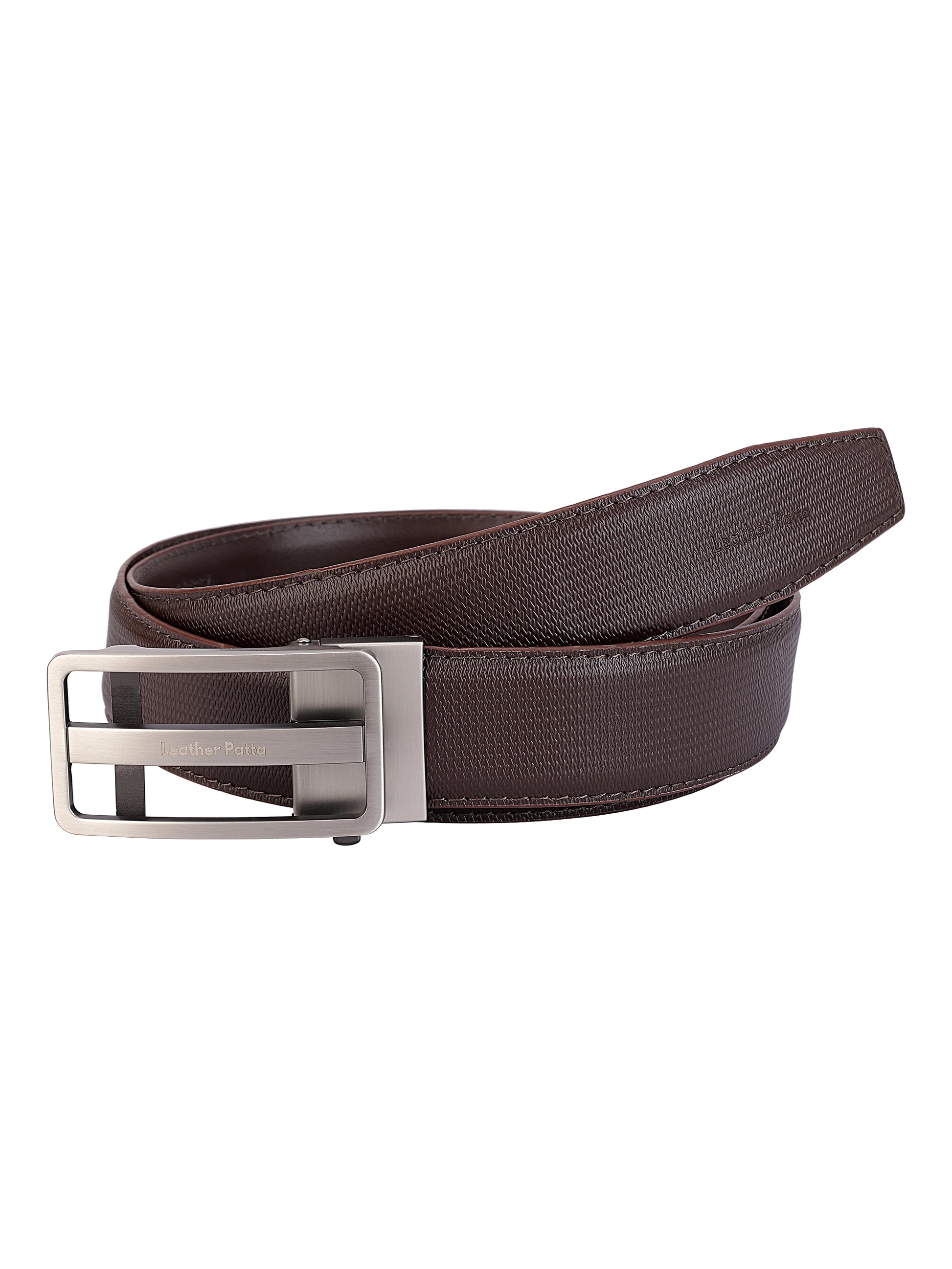 Leather Patta Men's Premium Brown Genuine Leather Auto-Lock Belt | Textured | Brushed Chrome Buckle