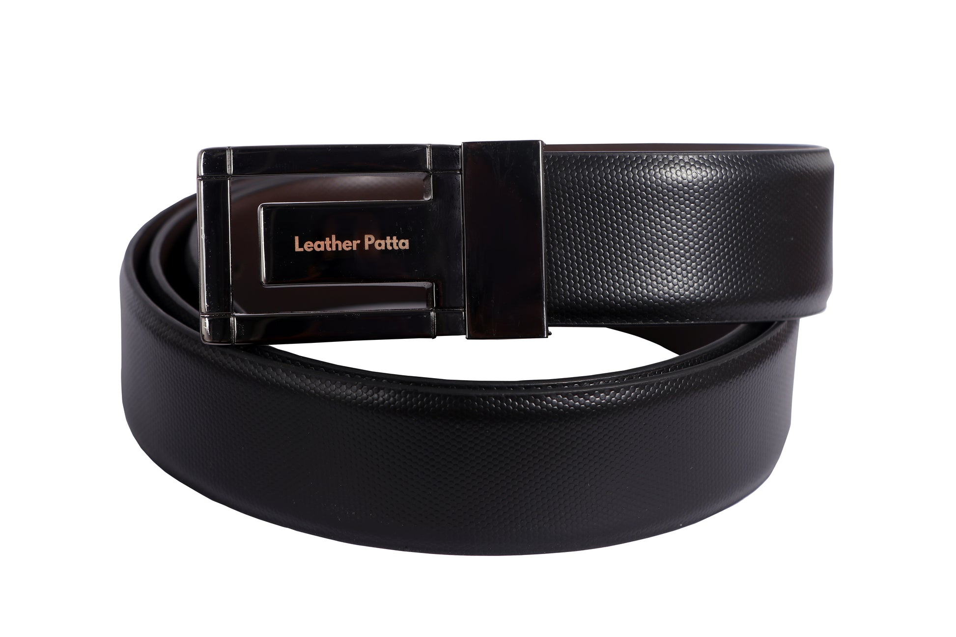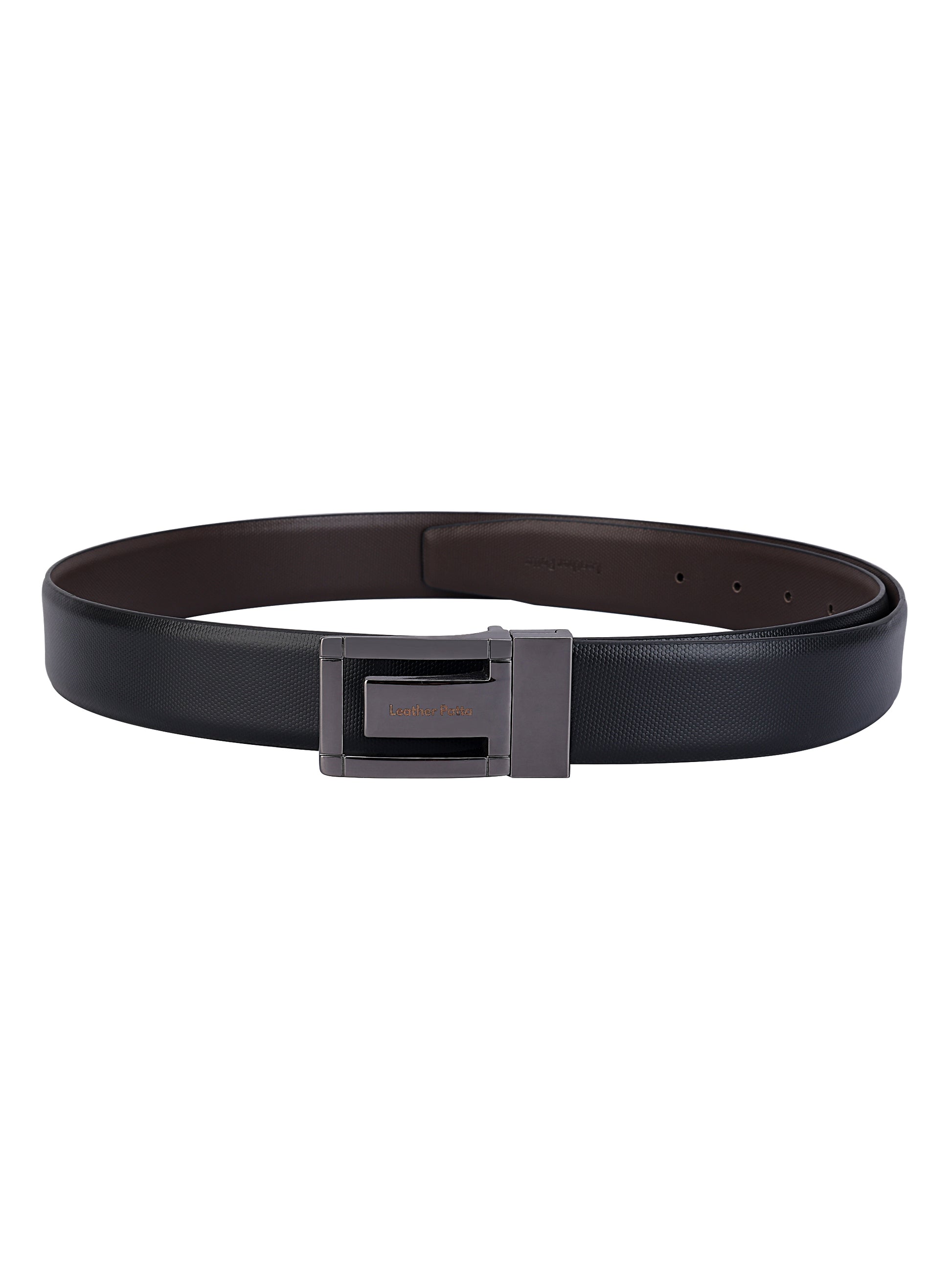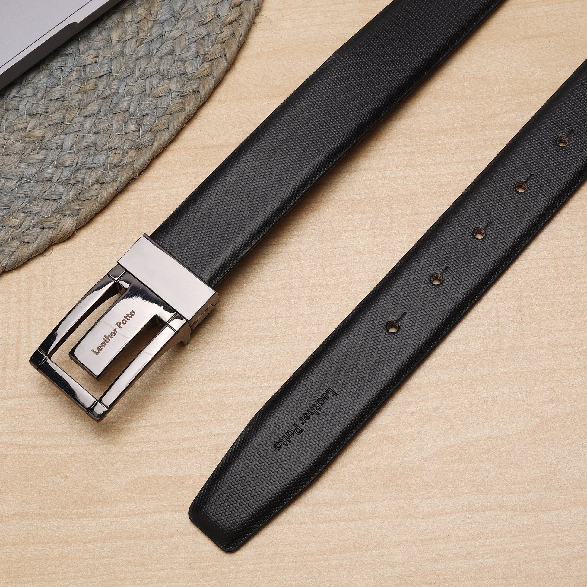 Leather Patta brings you this Textured Genuine Leather Reversible Belt with a premium chrome-finish buckle. Its lightweight construction ensures comfort for day-long wear, making it a great choice for office and formal occasions.
